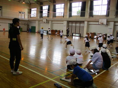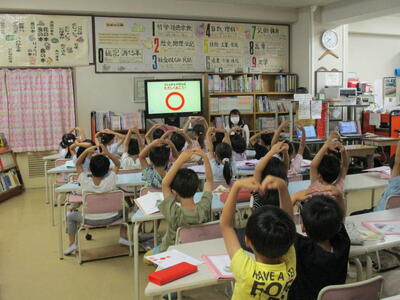 外部講師の先生を招いて、1年生がしゃぼん玉体験をしました。コツをつかむまでは難しそうでしたが、慣れてくるとたくさんしゃぼん玉を作ることができました。