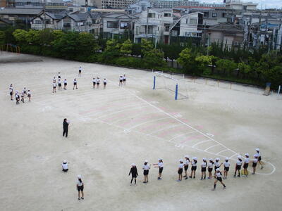 新体力テストのシャトルランテストは、持久力を測定する種目です。ドレミの音の速さに合わせて走ります。