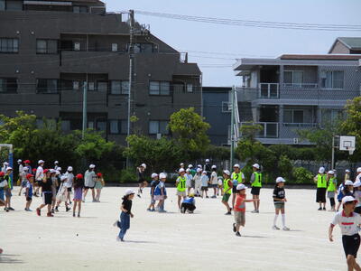 今日は、不審者侵入を想定した、防犯避難訓練を行いました。警察の方に来ていただき、不審者役をしていただいたり、さすまたの使い方を教えていただいたり、児童には不審者に出会ってしまったときの対処法などのお話をしていただいたりしました。