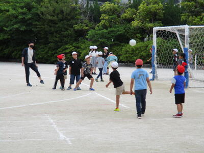 今日のロング昼休みに、縦割りのなかよしグループで遊びました。鬼ごっこやドッジボールなど、仲良く遊ぶ姿が見られました。