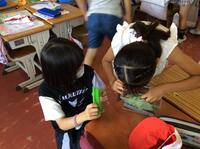 ある日の理科の時間には、ルーペをもって、熱心にモンシロチョウやアゲハチョウの幼虫の観察をする姿が見られました。