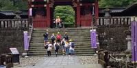 お昼ご飯が終わり、グループで日光山内を回ります。午前中には、少し雨が降りましたが、今はあがっています。
