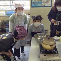 先日、5年生が今年度最後の調理実習を行いました。冬休み前に作ったエプロンを着用してやる気満々で取り組みました。今回は、お鍋でご飯を炊き、煮干しで出汁を取ったお味噌汁を作りました。今年度4回目の調理実習なので、手際も良くなりました。お鍋でお米を炊くのが初めての子どもたちは、火加減に気を付けながら、ご飯が炊けていく様子をじっくり見ることができました。自分たちで作ったご飯とお味噌汁の味は格別だったようで、「お米が甘い。」や「出汁の味がしっかりとわかる。」などステキな感想も出ました。給食前と給食後の調理実習でしたが、自分たちの作ったものはどの班も完食していました。お家でも調理実習の経験を生かしていってほしいです。