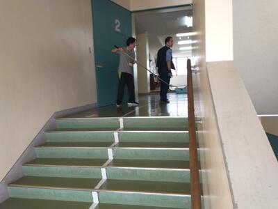 不審者侵入を想定した、防犯避難訓練を実施しました。行徳警察署の方に来ていただき、助言していただきました。