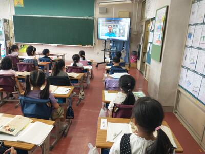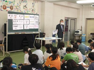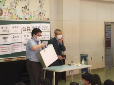 市川市青色申告会の方を招いて、6年生を対象に税金の大切さを学ぶ租税教室を実施しました。