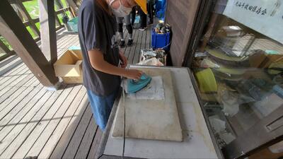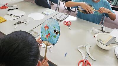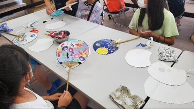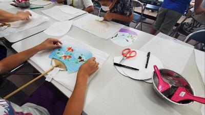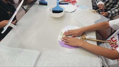 房州うちわ作り体験中です。