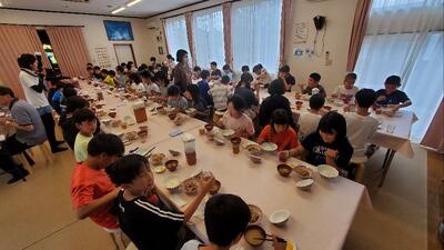 このあとに控えている、棚田での体験活動に備えて栄養補給です。