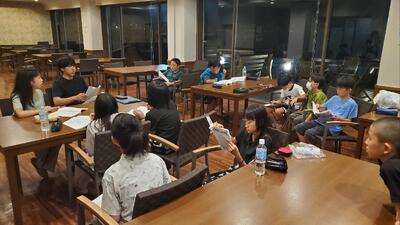 鴨川温泉で汗を流し、1日の疲れ?を癒したあとは、今日最後の活動、部屋長会議です。しっかり反省をして、明日に生かします。