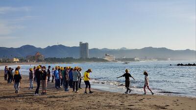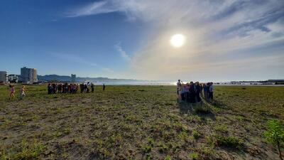 星空観察…には、明るすぎるので、夕日を背に海岸散策です。