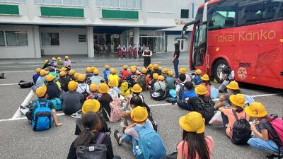 すっきり晴天。とても暑いですが、皆楽しんで見学しています。