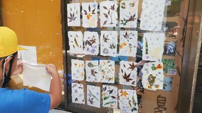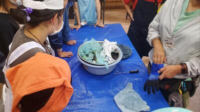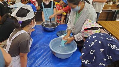 こちらは、紙すき体験中です。