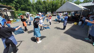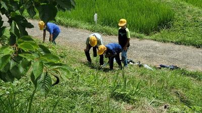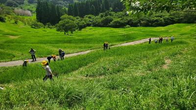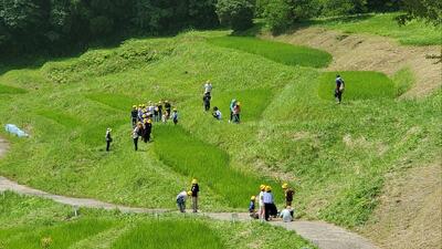 大山千枚田での活動を終え、昼食会場に向かいます。ほぼ予定通り活動できています。