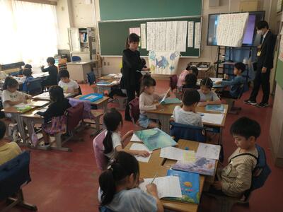 今日は、1年生、4年生の国語科の研究授業を行いました。子どもたちは、集中して、活動していました。