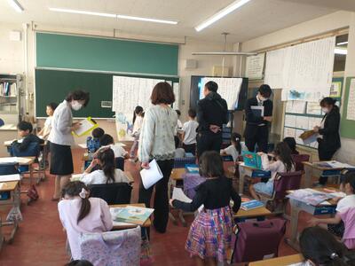 今日は、1年生、4年生の国語科の研究授業を行いました。子どもたちは、集中して、活動していました。