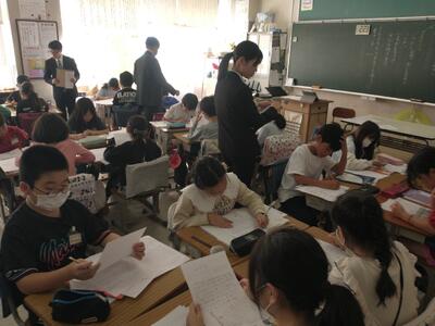2年生が生活科の学習で、昨日10時~12時に、町たんけんをしました。グループごとに、お店を見学させていただいたり、質問に答えていただいたりしました。ご協力いただいた、近隣のお店の皆様、探検の見守りをしてくださった保護者の皆様、ありがとうございました。
