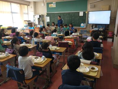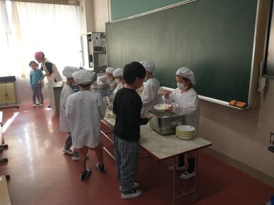 1年生の配膳の様子です。だいぶ上手になってきました。