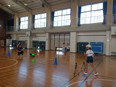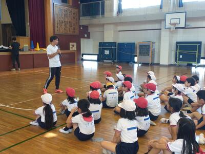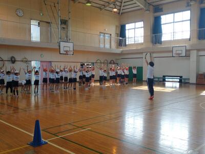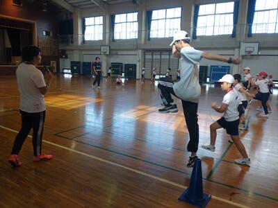 SPEXの元陸上選手のコーチを招いて、2年生が走り方を教わりました。走るときに使う筋肉をほぐす準備運動や速く走るためのフォーム、スタートの姿勢などを丁寧に教えていただきました。運動量も多く、楽しそうに活動していました。