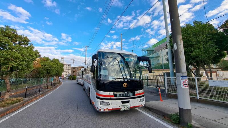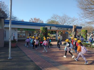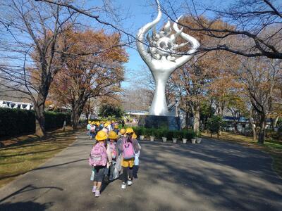 寒い朝ですが、5年生は元気よく、校外学習に出発です!