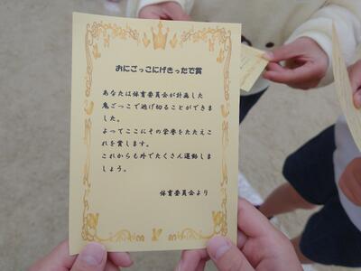 今日の業間休みに、3年生の鬼ごっこ大会が開催されました。鬼は体育委員会の児童です。1.2回戦は、全員つかまってしまいました。3回戦目で、何人か逃げ切ることができました。