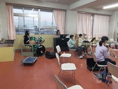 少人数ですが、週に3日、音楽が好きな子たちが集まって、放課後に合奏の練習をしています。オープンスクールや朝会などで、成果を発表しています。