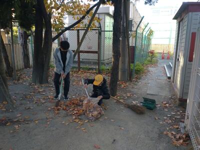 環境美化委員会(落ち葉掃きと昇降口掃除)