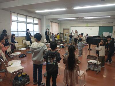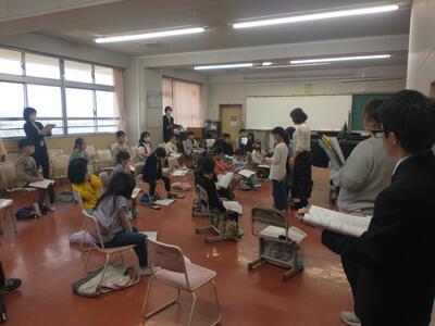 2年生の音楽校内研究授業を行いました。かぼちゃという曲のリズムうちの学習をしました。グループごとに、一人ずつ人数が増えていくので、難しいですが、頑張っていました。