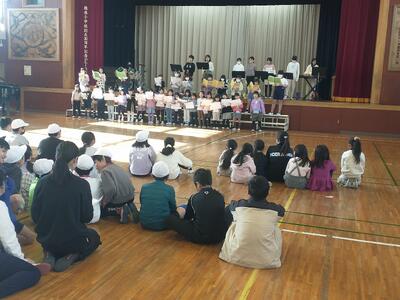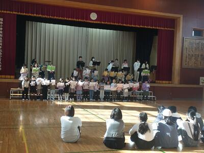 音楽部とクリスマスソングを一緒に歌うイベントがあり、1週間ほど練習に参加した児童が発表をしました。