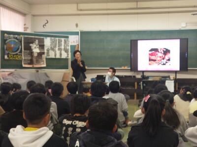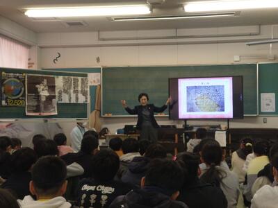 市川市に住んでいらっしゃる児玉さんを講師にお招きし、6年生に被爆体験のお話をしていただきました。原爆の悲惨な状況やその後経験したこと、その時の思いなどをわかりやすく伝えてくださいました。