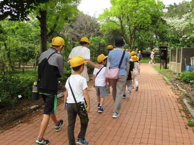今日は、交流仲間委員会主催の1年生を迎える会がありました。全校で学校〇×クイズを行いました。その後は、ペア学年で、福栄スポーツ広場まで歩き遠足に行きました。上学年が下学年を見守りながら、仲良く活動できました。