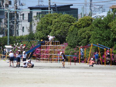 今日は初夏を思わせるような気温でしたが、ロング昼休みには、外で元気に遊ぶ児童がたくさんいました。