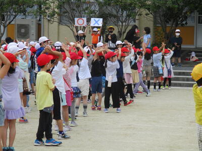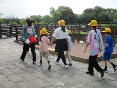 今日は、交流仲間委員会主催の1年生を迎える会がありました。全校で学校〇×クイズを行いました。その後は、ペア学年で、福栄スポーツ広場まで歩き遠足に行きました。上学年が下学年を見守りながら、仲良く活動できました。