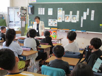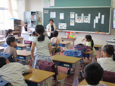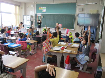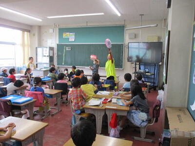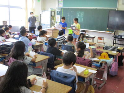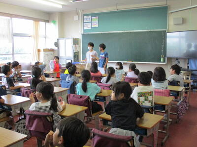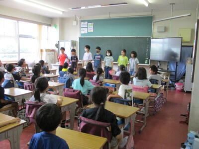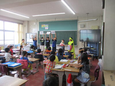 7月1日から本日16日まで、歯みがきばっちり月間として、ヘルシー委員会が中心となって、活動してきました。今日は、歯ブラシマンと仲間たちが1年生の教室に行き、歯磨き指導を行いました。また、歯みがきカードの取組もみんなが歯みがきを頑張った成果が見られました。ぜひ、夏休みも歯みがきを頑張って続けてほしいです。