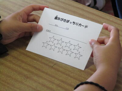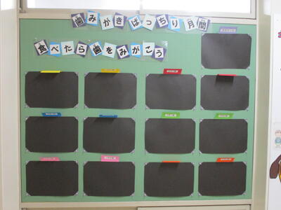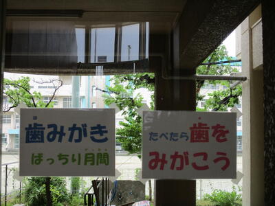7月1日から16日まで、歯みがきばっちり月間の取組を行っています。ヘルシー委員会の児童が朝の会で説明をしました。この期間、全校児童が歯みがきを頑張ってカードに色塗りしていきます。その結果で保健室前にクラスごとにシールが貼られます。