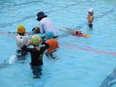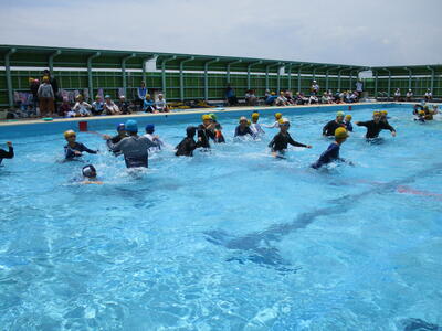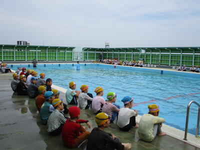 7月8日1.2時間目に低学年の水泳(水遊び)学習がありました。この日をもって、今年度各学年5回ずつ水泳学習を無事に終えることができました。プール見守りボランティアは、のべ人数で60名ほどご協力いただきました。どうもありがとうございました。