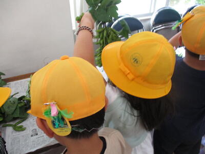 1年生の廊下 地域の方からいただいた笹に七夕飾り