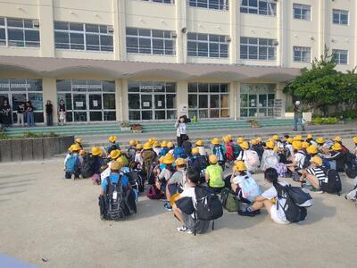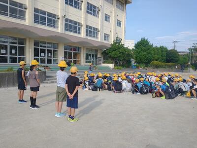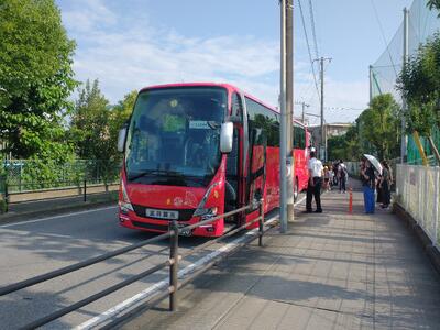 今日から2日間、5年生は南房総、鴨川方面に宿泊学習に行きます。出発式を終えて、予定より早く出発しました。