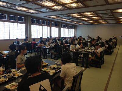 17時30分頃から夕食をいただきました。その後、時間差で、部屋で過ごしたり、入浴したり、お土産を見たりしています。21時30分には消灯の予定です。