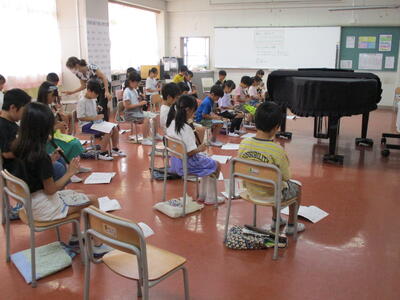 音楽部が「夏が来た」をテーマに、みんなで歌おう発表会を行いました。低学年から高学年まで、集まった子たちは、歌って、踊って、楽しい時間を過ごしました。