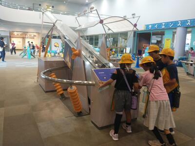現代産業科学館にてグループごとに見学し、その後お弁当を食べました。