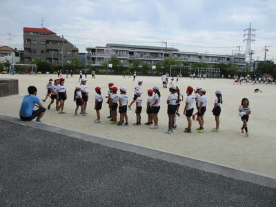 厳しい残暑が続いていますが、午前中は曇りで、久しぶりに外体育や業間休みの外遊びができました。昼休みには暑さ指数が31を超えてしまったので、校舎内で過ごしました。