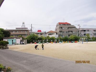 青空の下、体育の時間には「ソフトボール投げ」、ロング昼休みには「なかよしグループ活動」が行われました。