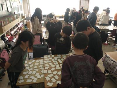 百人一首かるた 投稿日時 : 2024/01/22 福栄小学校管理者 あちらこちらの教室から、百人一首を読む声が聞こえてきます。休み時間には、図書委員会の児童が読み、かるたの練習会をしていることもありました。