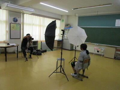 6年生の卒業アルバムの個人写真や委員会の写真など、カメラマンさんが撮影を行いました。