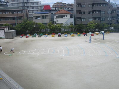 新体力テストのシャトルランテストは、持久力を測定する種目です。ドレミの音の速さに合わせて走ります。