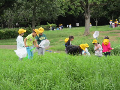 10月3日に、生活科の学習で、1年生が福栄スポーツ広場に虫探しに行きました。秋の虫は捕まえられたかな?