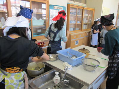 5年生が家庭科でご飯と味噌汁の調理実習を行いました。鍋でご飯を炊くのは火加減が難しそうでした。おこげも美味しいですが・・・。