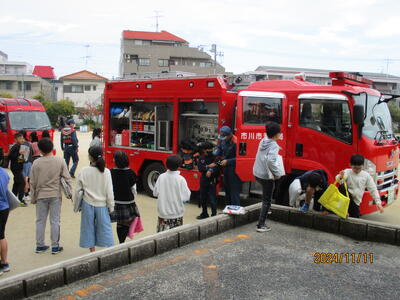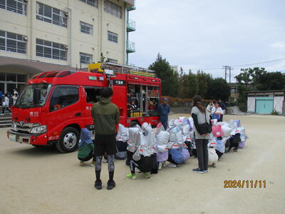避難訓練 投稿日時 : 2024/11/11 福栄小学校管理者 今日は大きな地震の後、家庭科室から火災が発生したことを想定し、避難訓練を実施しました。市川南消防署の方に避難の様子を観察していただいた後、消防車見学やいくつかの体験をさせていただきました。お忙しい中、防災教育のためにご来校いただきました市川南消防署の皆様、ありがおうございました。 避難の様子 消防署の方の講評 消防車見学 防火服体験 煙中体験 地震体験車 消火器の使い方見学 消火器体験
