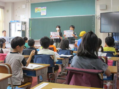 7月1日から16日まで、歯みがきばっちり月間の取組を行っています。ヘルシー委員会の児童が朝の会で説明をしました。この期間、全校児童が歯みがきを頑張ってカードに色塗りしていきます。その結果で保健室前にクラスごとにシールが貼られます。