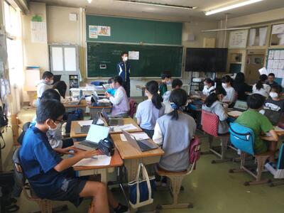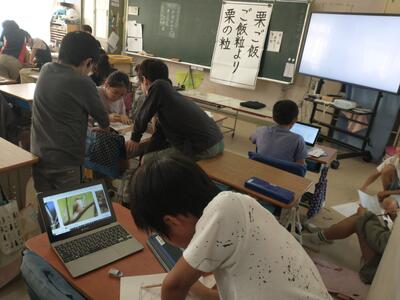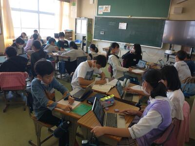 どの学年も読書発表会に向けて、準備をしています。5年生は、タブレットを活用しながら、何やら絵を描いていますが!?