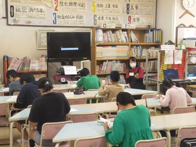 本日業間休みに、5.6年各クラスの代表となった児童の辞書引き大会本選を行いました。どの子もすごく集中していて、図書室には、辞書のページをめくる音とえんぴつで書き写す音だけが響いていました。